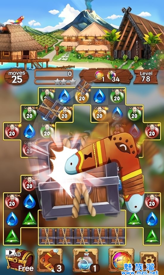 1、消除闪耀的宝石和淘气猴子的同时尽情享受这个岛屿,许多关卡在等着您;