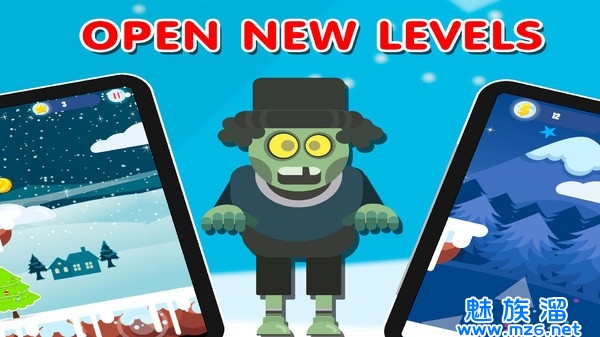 1.在冰和雪的美丽景色中收集礼物,有些礼物在雪地里,有些则漂浮在空中;