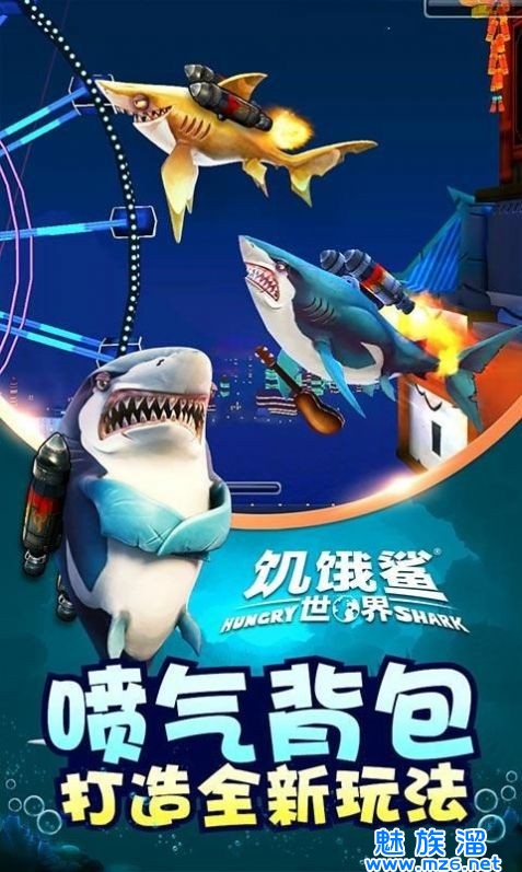 升级你的鲨鱼装上超酷的装备,要大力一点、游快一点更饿一点!每只鲨鱼都需要、耳机、雨伞还有超炫的喷射背包!