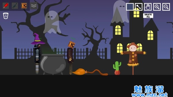 巫师沙盒模拟器是一款模拟万圣节的手机游戏,在这里玩家们将通过轻松闯关的模式开始一场趣味性十足的大冒险游戏,游戏内容十分精彩,玩家们可以通过操作各种角色人物进行冒险体验,挑选你认为最适合的工具挥向突然出现的小鬼,游戏自由度超高,快来下载体验一下吧!