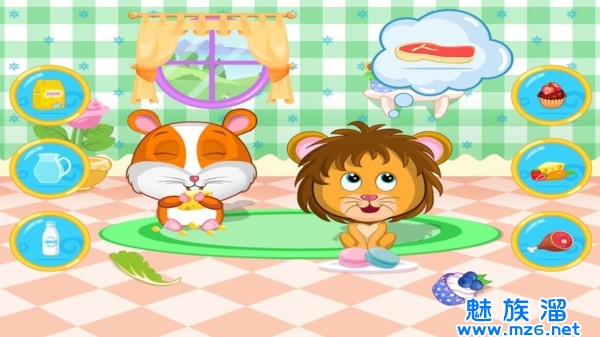 2、通过这款育成游戏,了解小动物的生长状态,需要什么食物,补充营养。