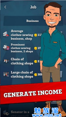 从贫民到大亨中文版是一款非常真实有趣的人生模拟器类手机游戏,开局两手空空,而且还是一位穷到没裤子穿的屌丝,需要通过你的双手和智慧去找工作、升职加薪,最终成为了大富翁。当然除了赚钱工作外,还需要适当的娱乐来提高生活质量和幸福感,亦或是谈了恋爱交个女朋友。