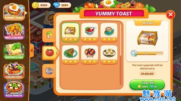 2.晚餐的生意很火爆,你的财富奖励多多,建设好自己的餐厅,提供了最新鲜的食材。