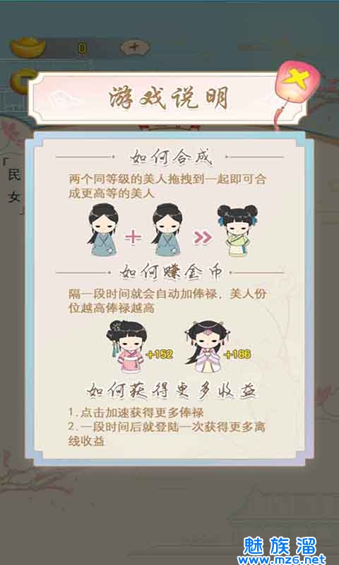 两个同等级的美人拖拽到一起即可合成更高等的美人;