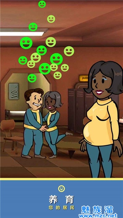 2.避难所运转起来之后,有人负责厨房(不要问哪里来的食物),也有人负责发电。至于你问到为什么没有看大门的?额,慢慢发展嘛。看到小编图中上面的标示了么,笑脸是满意度,数字是目前的人口数,其他则是电力、食物、水以及瓶盖。三样必需物资减少到了竖线位置后避难所的居民将会陷入恐慌,运转上容易出现问题,满意度也会下降。