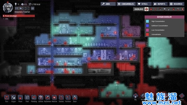 7.点进氧气概览图查看气体在基地的实时流动情况,监测二氧化碳的积累和氧气生成过程,使你的殖民地成为一个真正的深空绿洲。