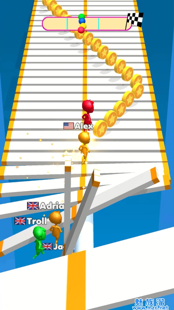 4、穿越障碍物,收集硬币,并尽量避免掉落!