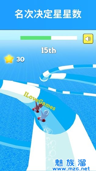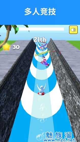 3、挑战一切的不可能,以最快的速度从滑梯上起飞,并且和其他玩家一较高下,成为第一名。