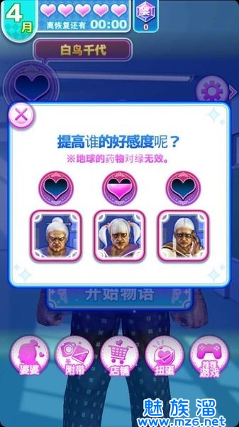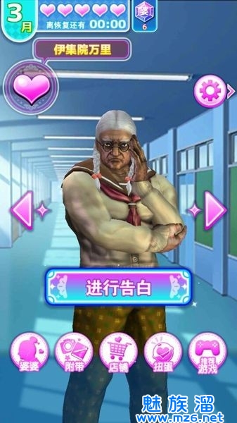 3、在游戏中玩家要与这些老太婆度过1年的学园生活,并在1年后选择心仪的欧巴桑进行告白,玩家在游戏中所做的选择将会带来不同的游戏结局。