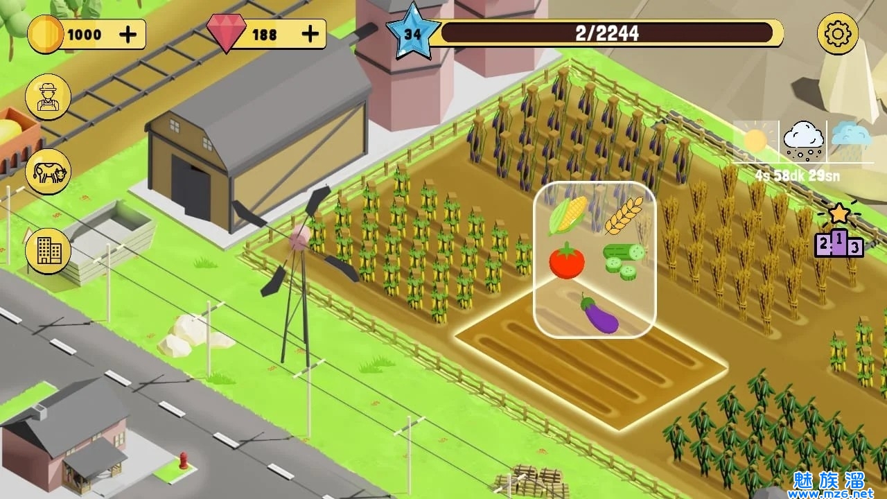 1、轻松的农场生活,种植只需点击屏幕,完成任务查看仓库。