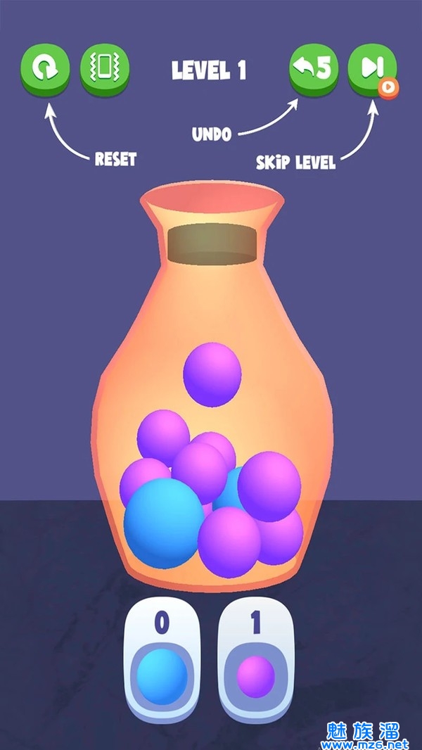 1.游戏里需要运用你的策略,同不同的球填满各种罐子,每一关都有每一关的特色罐子,加油用脑力填满。