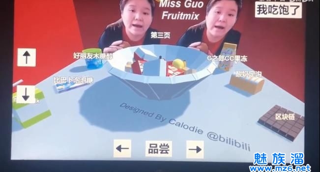 2、每一种水果郭老师都会给你叫出来。点击品尝按钮,郭老师就会用她魔性的声音和独特的方式来评论。