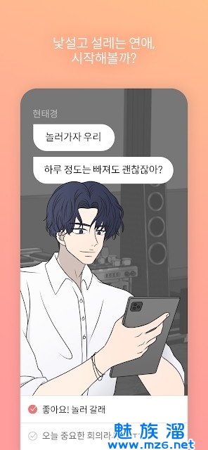 1、由韩国厂商开发的一款乙女向文字短信恋爱养成手游,在Messenger Picka的游戏中,你将进入奇幻的短信世界,感受模拟放置养成的乐趣。
