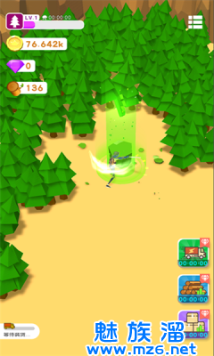 1、以通过砍伐树木去进行售卖,换一把更好的斧子继续砍伐;