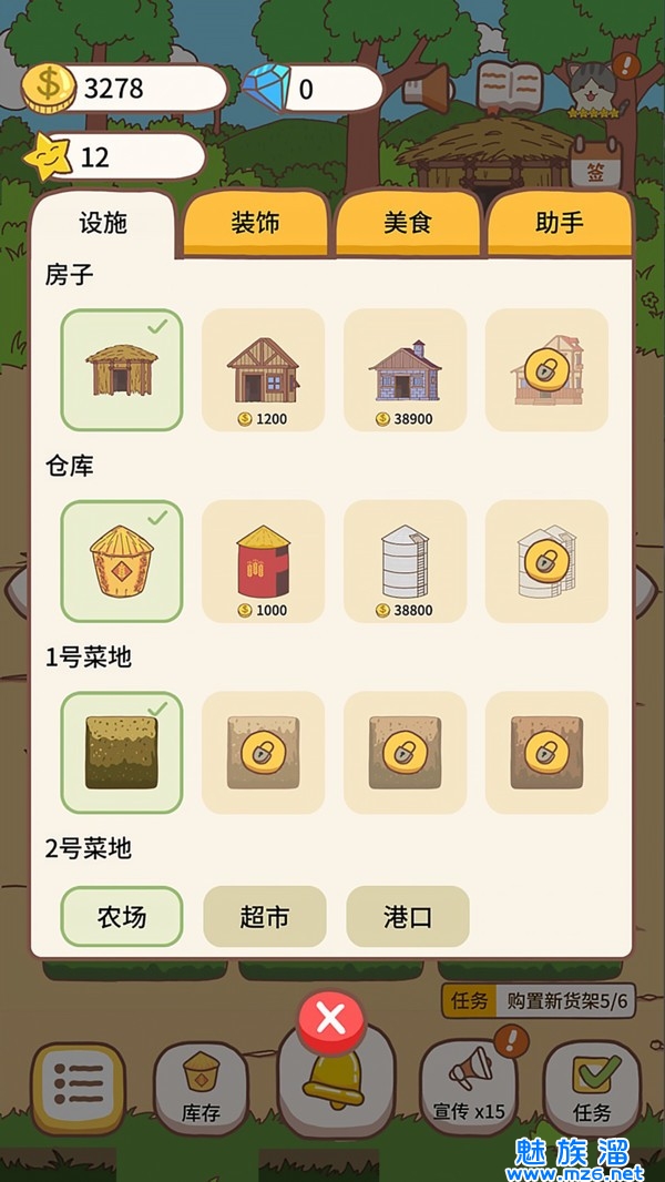 3、游戏还提供了多种设施和道具,赚更多的硬币来经营你的农场和超市。