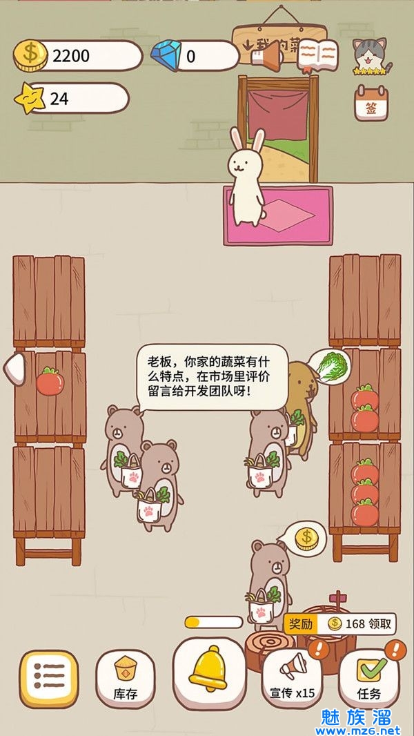 3、你将在动物的世界里经营一家超市,收集各种动物喜欢吃的水果蔬菜摆上货架吸引它们的到来。