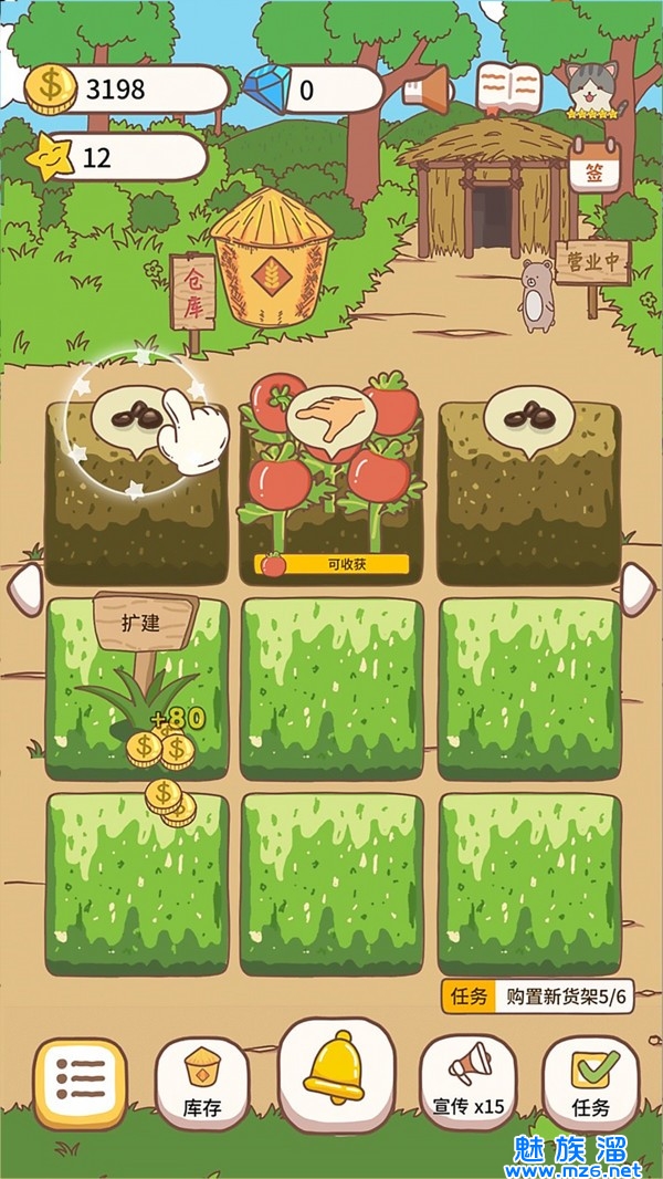3、赚更多的硬币来经营你的农场和超市,还需要根据您的超市规模扩展设施。