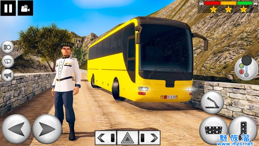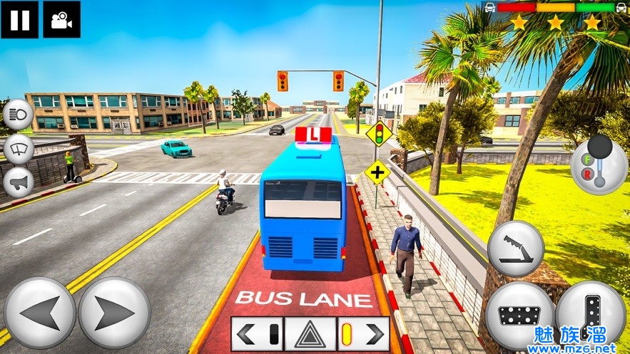 1、高清游戏场景,驾驶巴士的视觉感清晰,观察路面情况,在红绿灯的地方需要停。