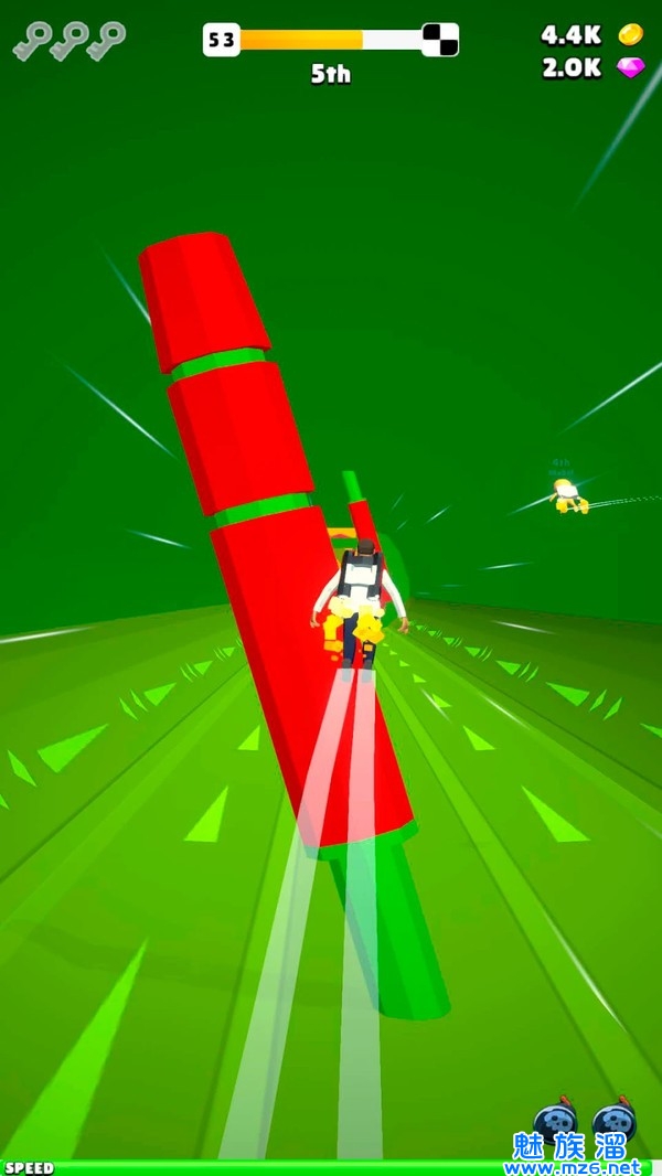 3、急速冲刺,灵活避开沿途障碍陷阱,轻松动动手指,就能取胜。