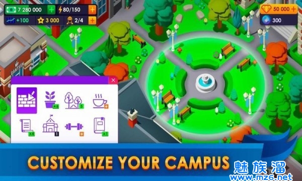 2、玩家化身校长管理你的校园,从招生,学生管理,打造校园建设等内容任你体验,自由发挥打造一个顶尖校园。