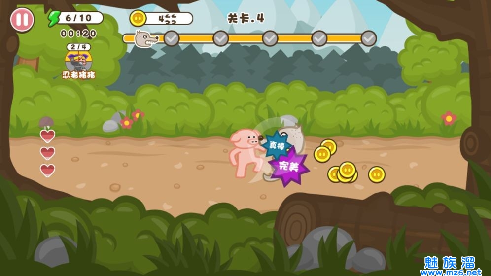 3、各种道具都有各自不同的效果,可以控制可爱的猪人完成各种跑酷操作。