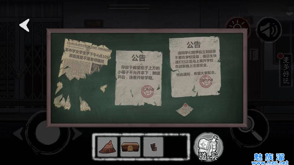 2、玩家通过寻找线索、解开谜题、获得道具并逃出学校。