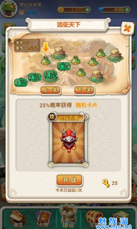 3、战斗简化,易操作,不烧脑。带有卡牌搜集与升级的玩法设计。率队远征,探索经典副本。