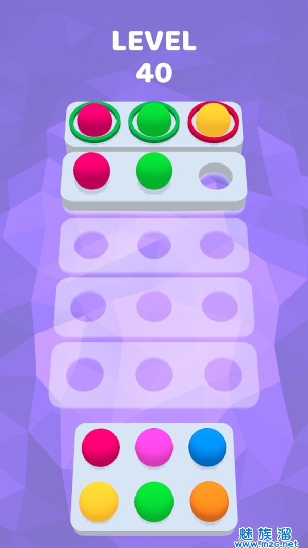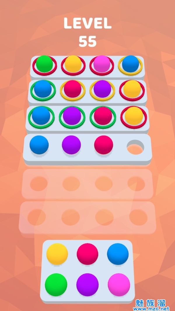 1.烧脑排序是一个大脑燃烧的挑战游戏,每一排包含不同颜色的球,你需要把他们正确的划分到一起。