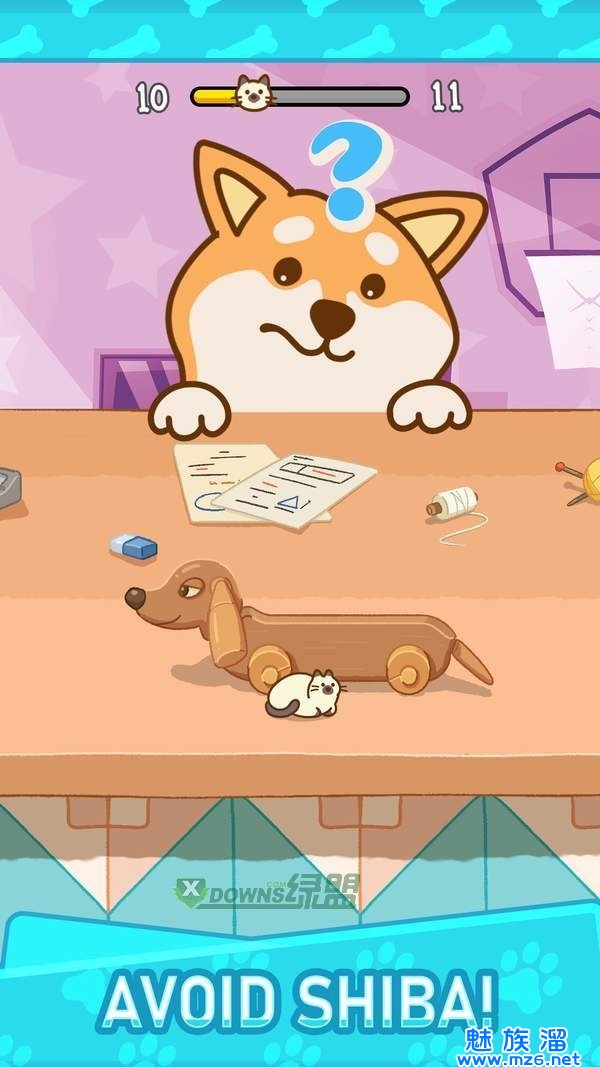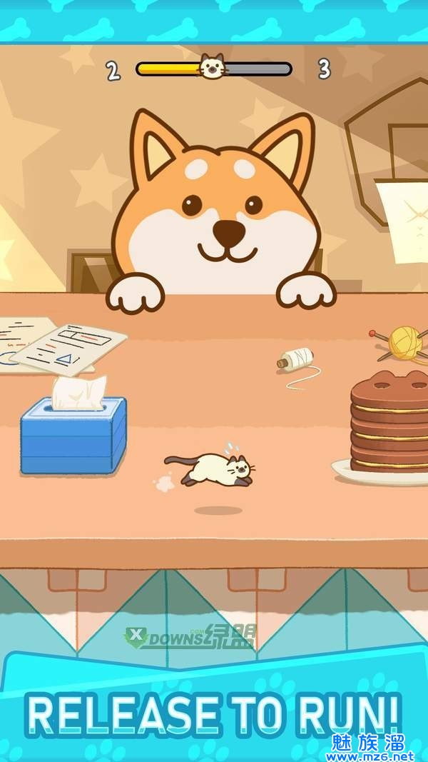 1、玩法上有点类似于躲猫猫玩法,玩家们需要利用游戏内的各种道具物品来使自己能够避开柴犬的追击。