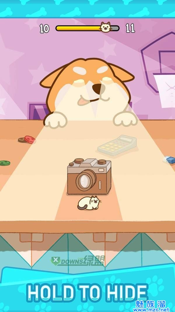 在游戏中玩家将要和可爱的柴柴小狗,一起玩躲猫猫哦!玩家需要在游戏中找物体来隐藏自己,千万不要被柴柴给发现了哦!它非常的精灵,只要你发生一点点动静就能找到你哦,随着玩家自己不断地去进行挑战,解锁出的功能将会变得更多的,和柴柴一起快乐玩耍。