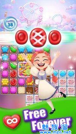 交换并匹配3个或更多相同颜色和形状的糖果。
