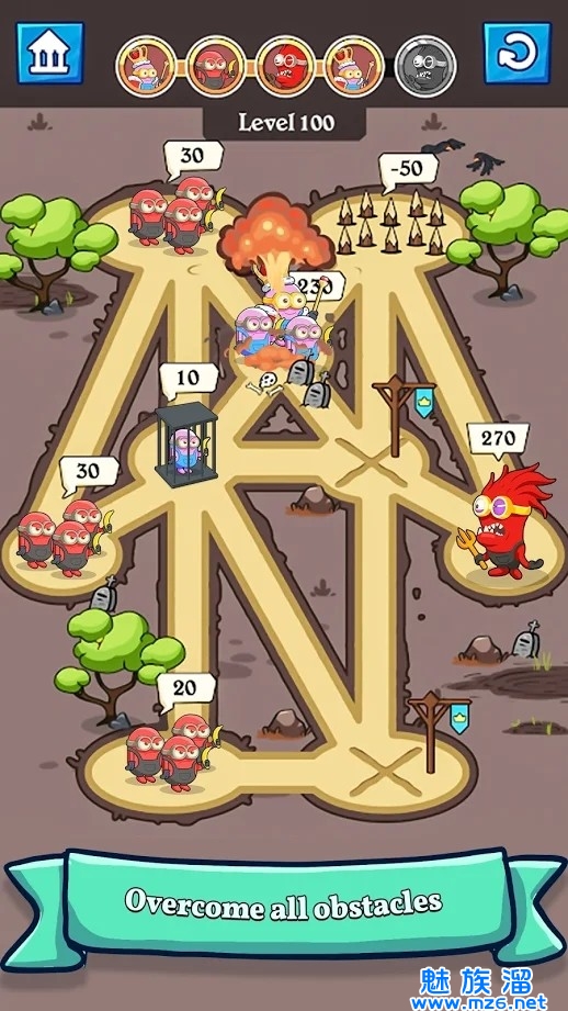 3、层层升级武装守卫,打败敌人,赢得游戏必须选择不同的怪物代表他们战斗。