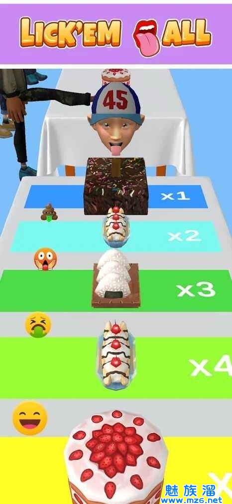 1.舔光它们游戏你用舌头舔的蛋糕越多,蛋糕的边长就越快,这样你吃起来就越容易;