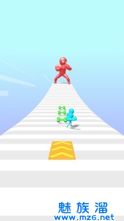 简约风格的一款跑酷小游戏,玩家在赛道上不断的奔跑还有运用自己的技能来开道,因为你会遇到很多肌肉橡皮人阻挡你的前进,只有战胜他们才能让你跑的更远,而且还有机会拿到道具奖励让你能够更加轻松的击败后续的关卡出现的肌肉人,游戏里面角色的设计都比较恶搞,看上去就非常的搞笑,这也就让游戏的奔跑方式非常的另类!
