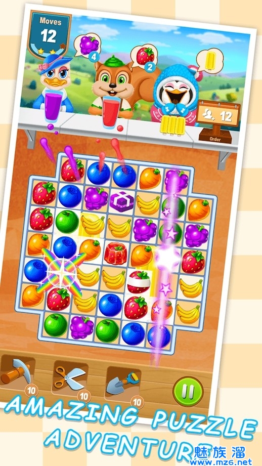 皇家果酱比赛游戏一场新鲜模式的果酱比赛游戏,在这里我们需要匹配三个或者以上的水果来达到消除的条件,赶紧来收集更多相同的水果,取得厉害的特效功能,这样你就能实现爆炸功能,顺利取得高分。