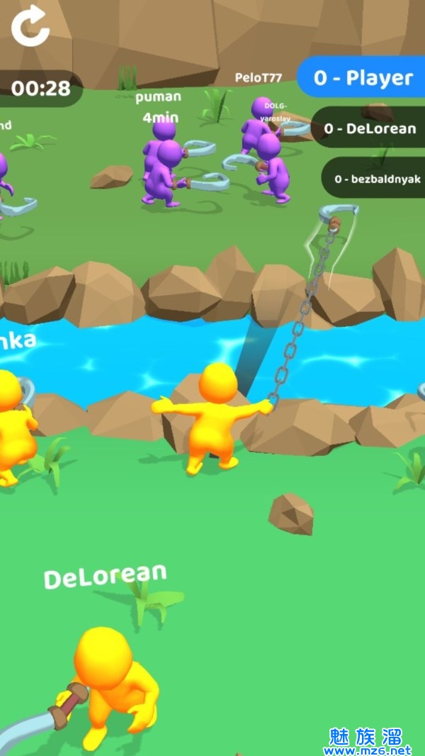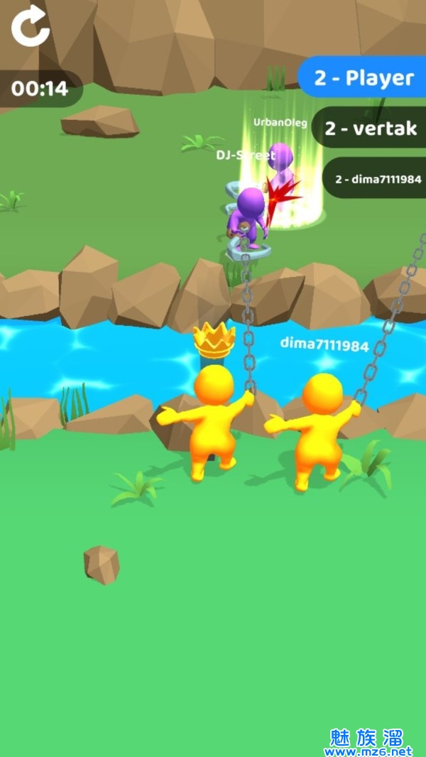 2.瞄准游戏中的火柴人然后出动你的道具,将火柴人勾住,就能获得胜利;
