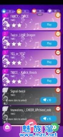 1、点击黑色瓷砖就可以进行挑战,聆听不同的歌曲,让你享受闯关的快乐;