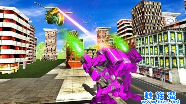3、你可以控制自己的机器人去进行飞行,从高空之中去欣赏城市的风景哦;