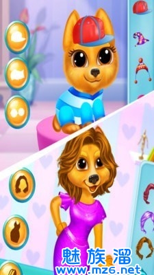 1、玩家可以给小狗妈妈去穿搭各种各样的服装,还可以做出各种不同的毛发造型哦;