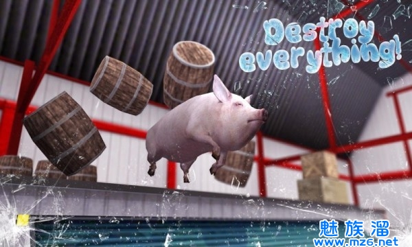 1、恶搞创意的游戏剧情,玩法和关卡任务,轻松搞笑的娱乐冒险环节,操控小猪进行任意破坏行动;
