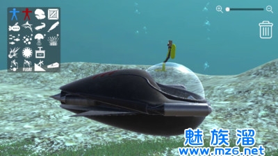 创建水下物理游乐场,弹起气泡,激活浮球机。驾驶潜水艇,滑下坡道和斜坡。