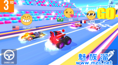 1.在炫酷赛道上,与来自世界各地的玩家比拼,每场比赛多达 3 位对手