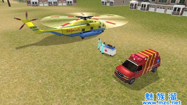 3.逼真的3D城市和越野环境,使用直升机和救护车一起营救。