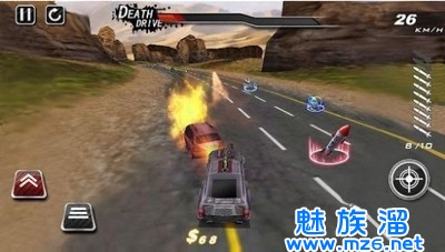 3、游戏操作简单,容易上手,赛车与射击结合,精彩的画面,真实的刺激,许多类型的汽车都可以解锁,自由挑战。