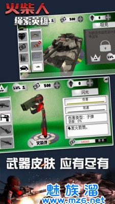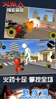 1、你将会成为整个城市中最强大的火柴人英雄,你拥有各种强大的能力和各种武器