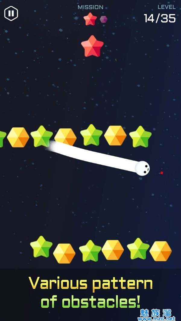 3.拖动手指在太空中吃掉星星宝石,使蠕虫变长