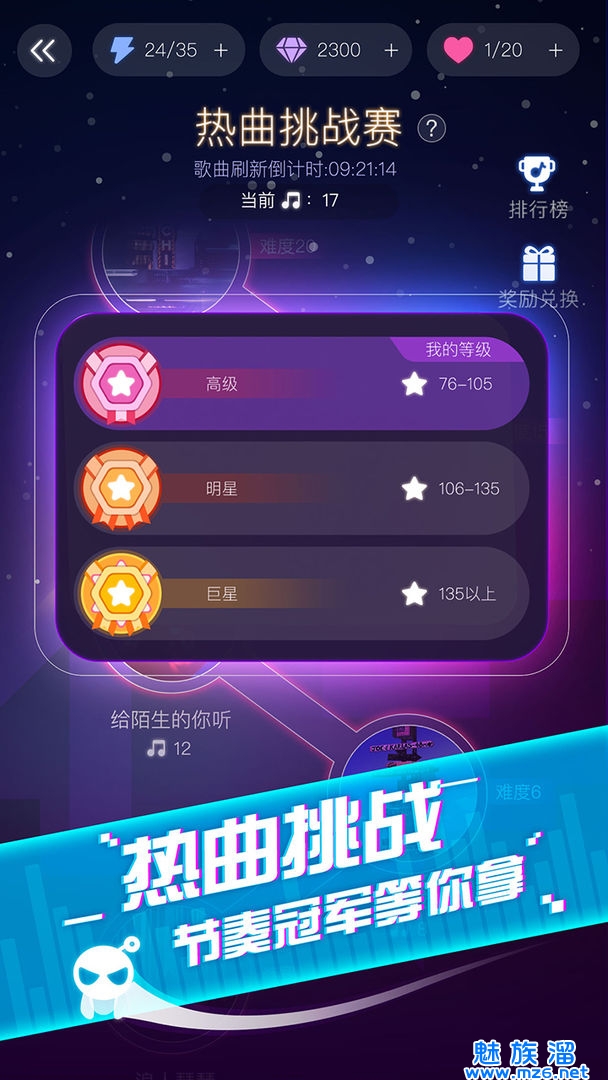 2、歌曲的节奏可以自行去选择难度然后挑战自己,快速的获取更多的奖励以及道具;