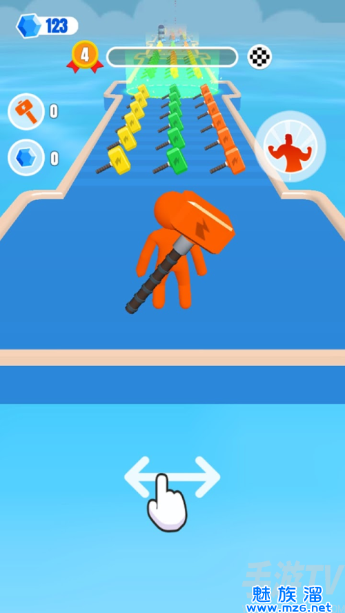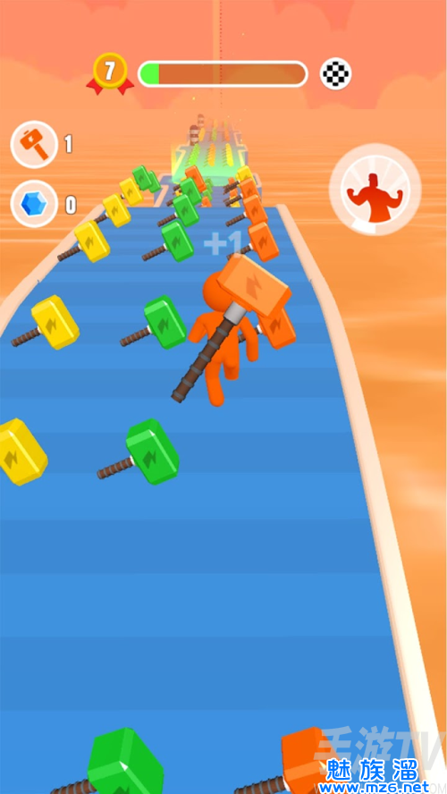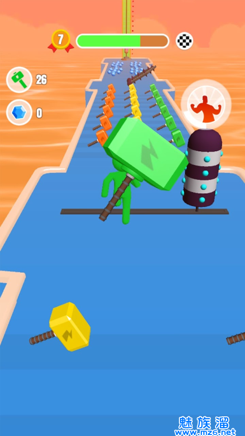 操作起来特别的简单,操控橡胶人挥舞大锤子进行酷跑闯关。