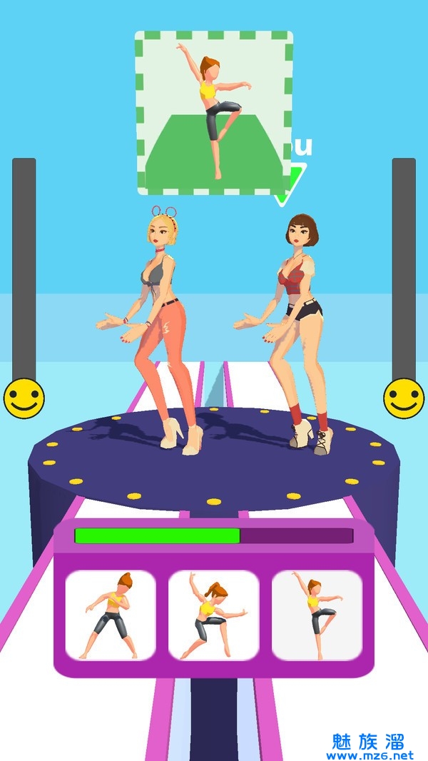 这款舞蹈对决拥有很多关卡,每一个关卡里面都有一个不同的对手,当你的舞姿比她好看时,你就可以顺利通关!