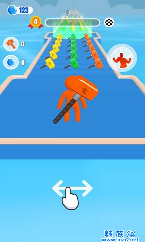巨大的锤子这款游戏可以说是当前非常有意思火爆的一款游戏了,游戏画风采用的是3d风格制作,非常诙谐好看,玩家在游戏中可以尽情的闯关,挥舞手中的锤子进行战斗,一路上的敌人数不胜数,而且玩家必须在关卡中躲避前方更加阴险的障碍,当然也是会有道具给到你去捡起来的,不是太难也不简单。